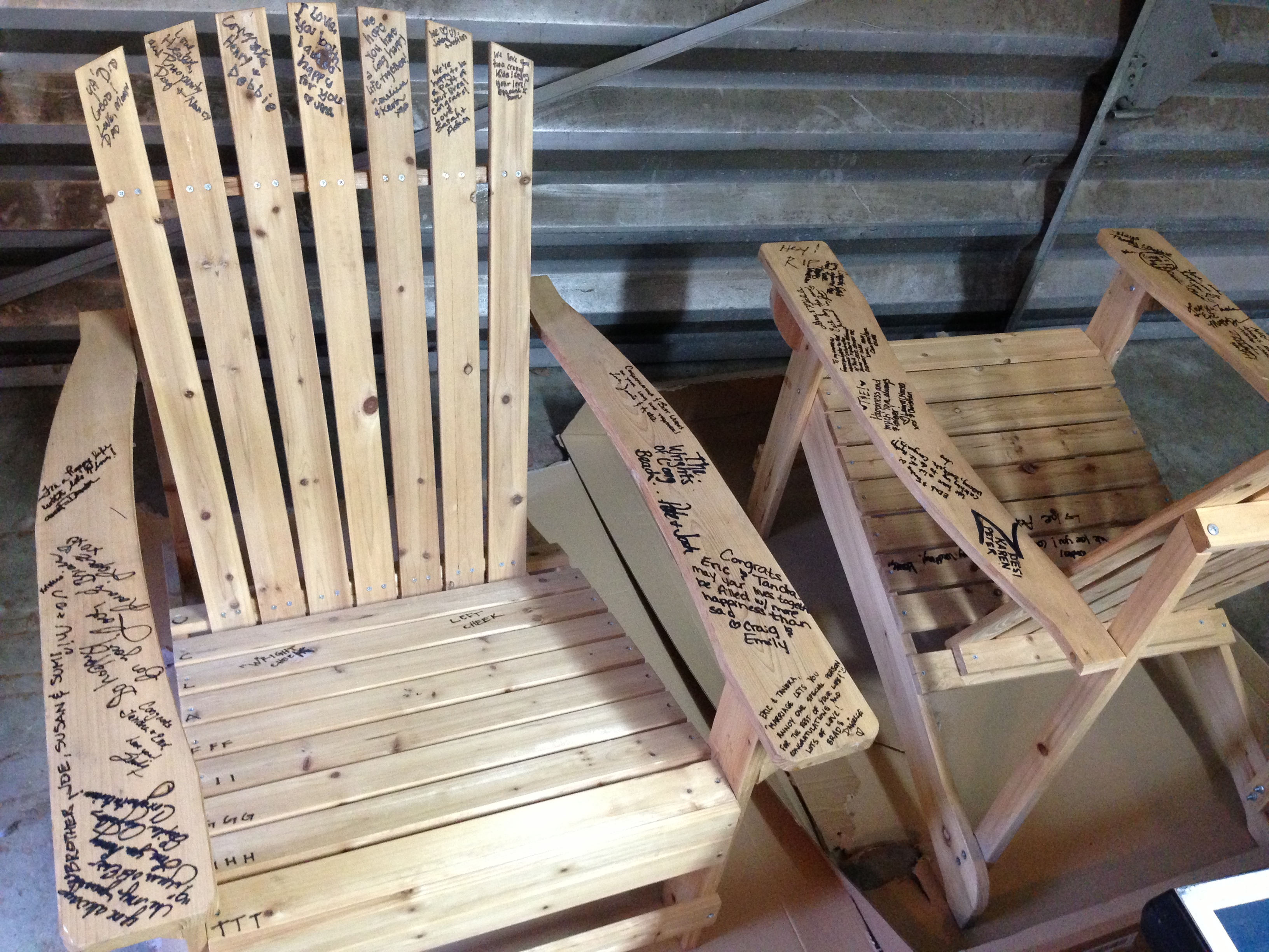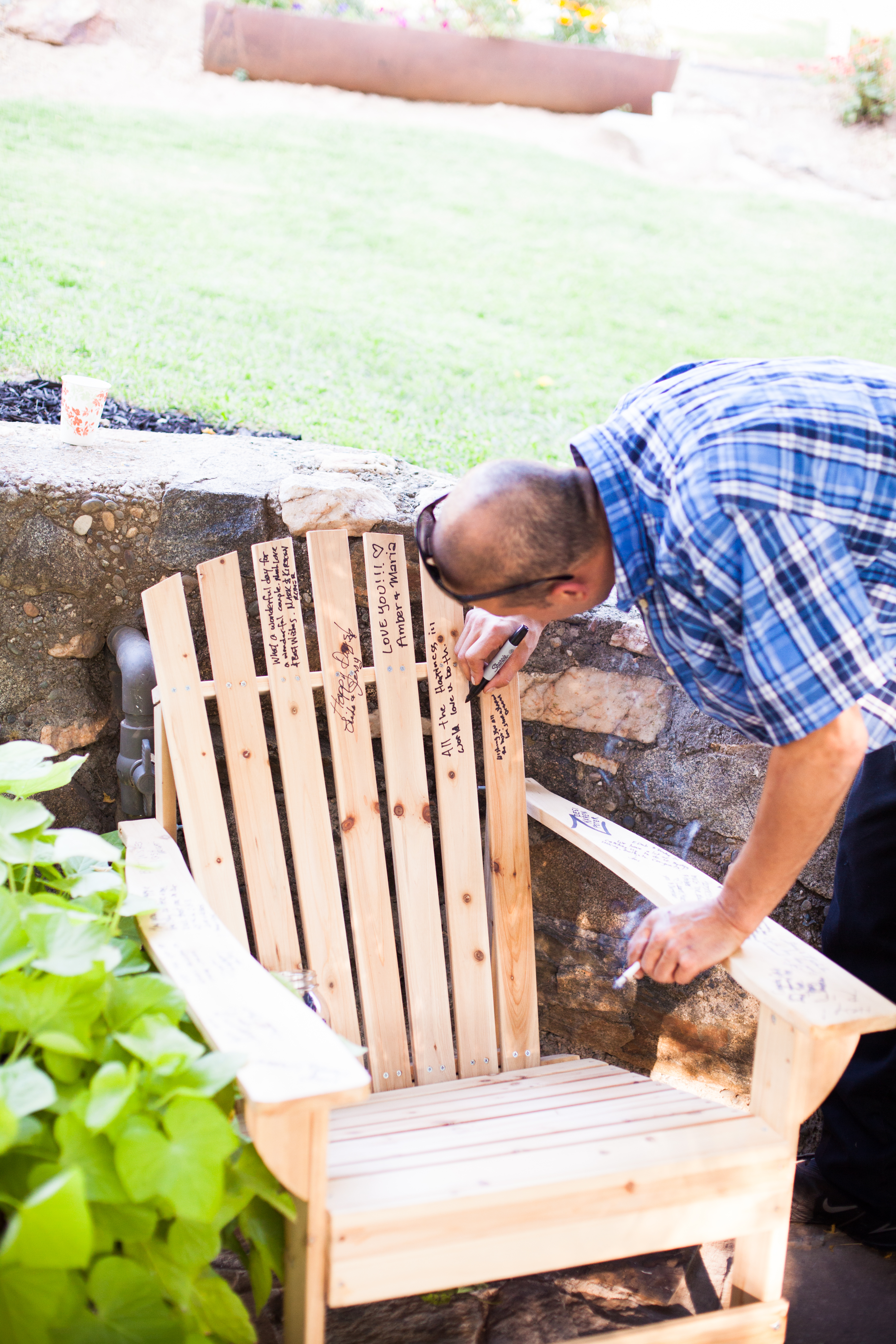 One of the unique touches at our DIY wedding was that we opted for guests to sign wooden Adirondack chairs instead of a guest book.