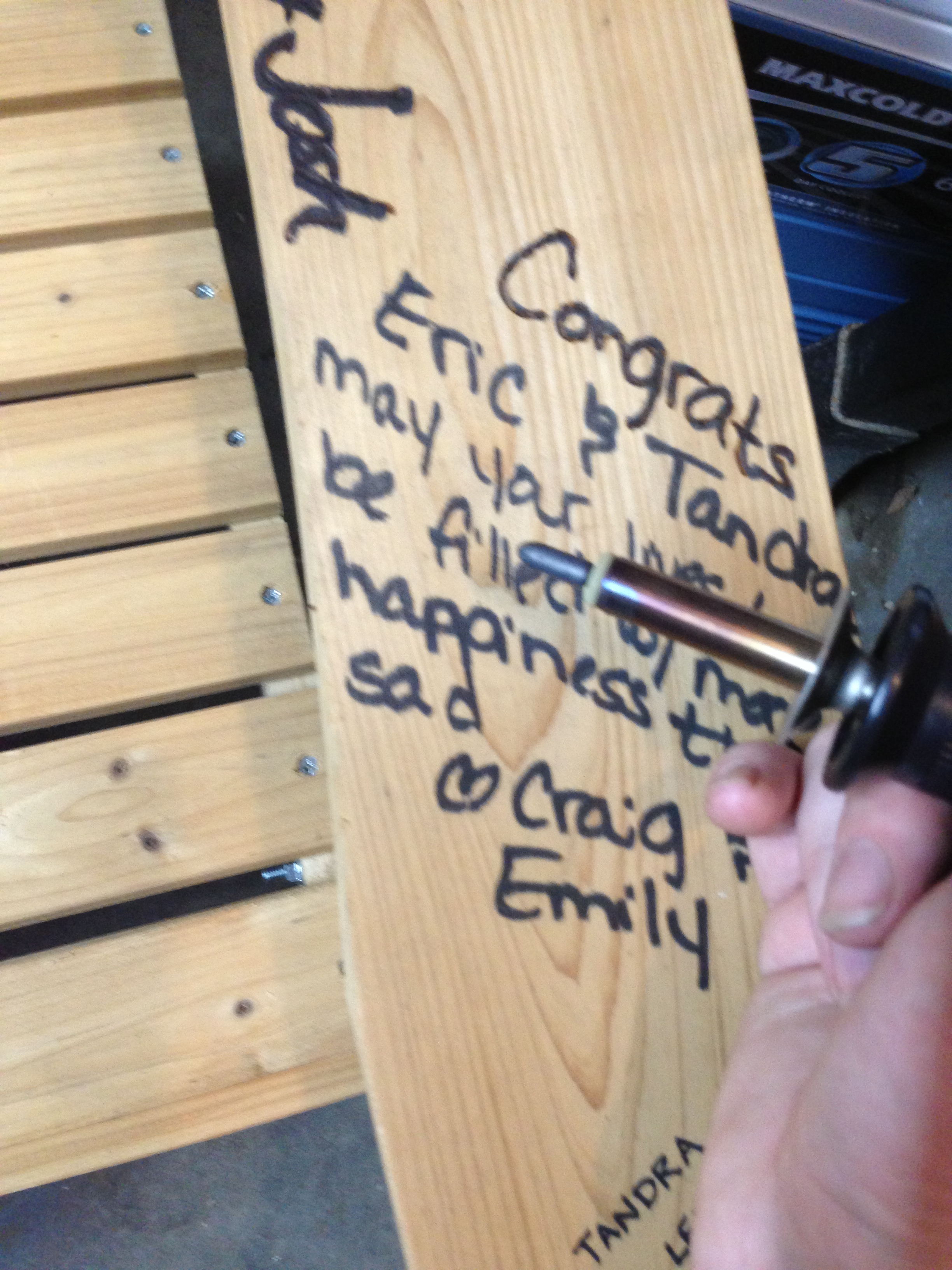 The solution: Burn the signatures and messages into the wood so they’d be permanent, then stain the wood for protection from the elements.