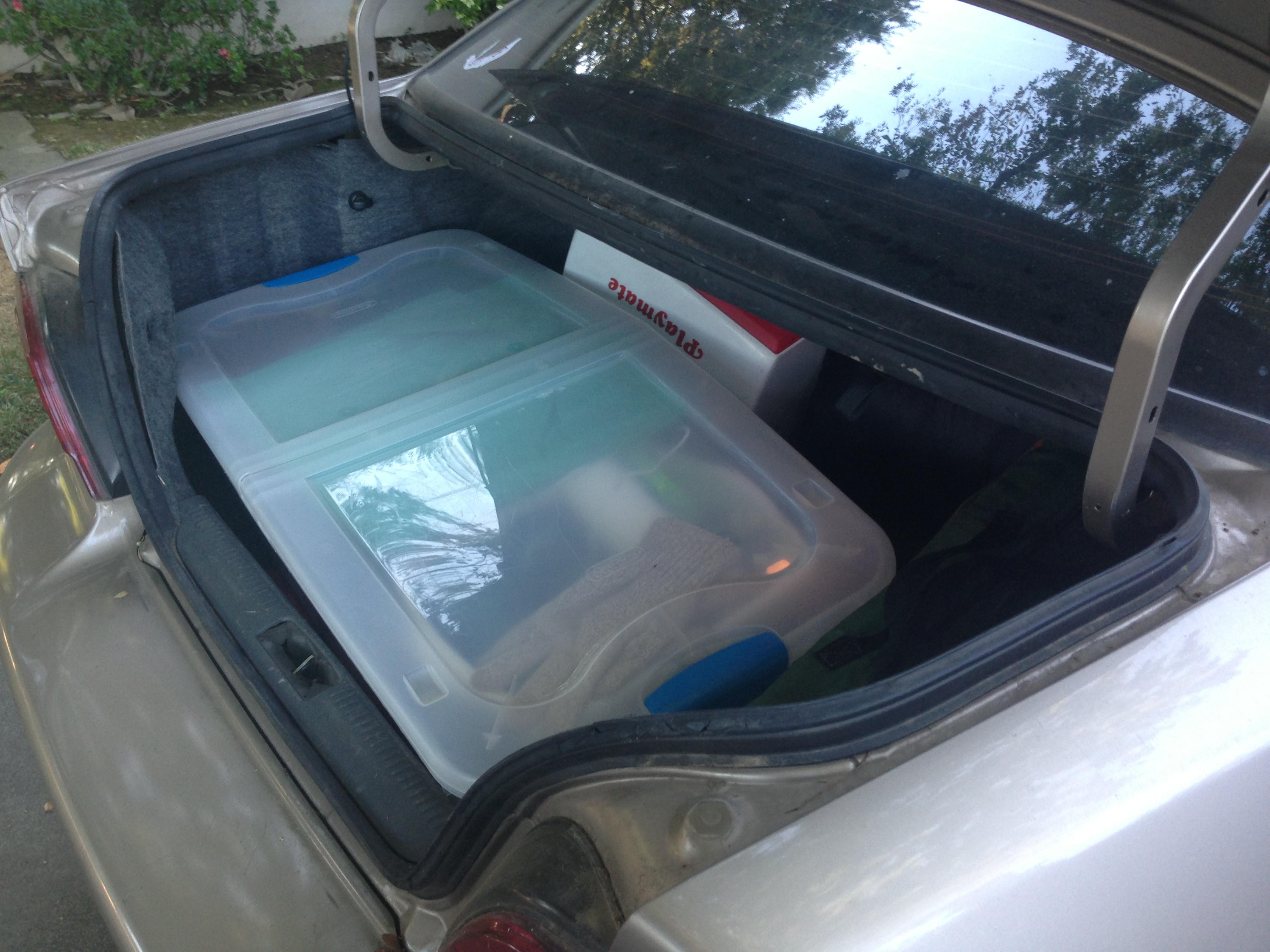 Now here’s all the gear fitting into this tiny little rubbermaid…(The kind that slides under the bed as storage)