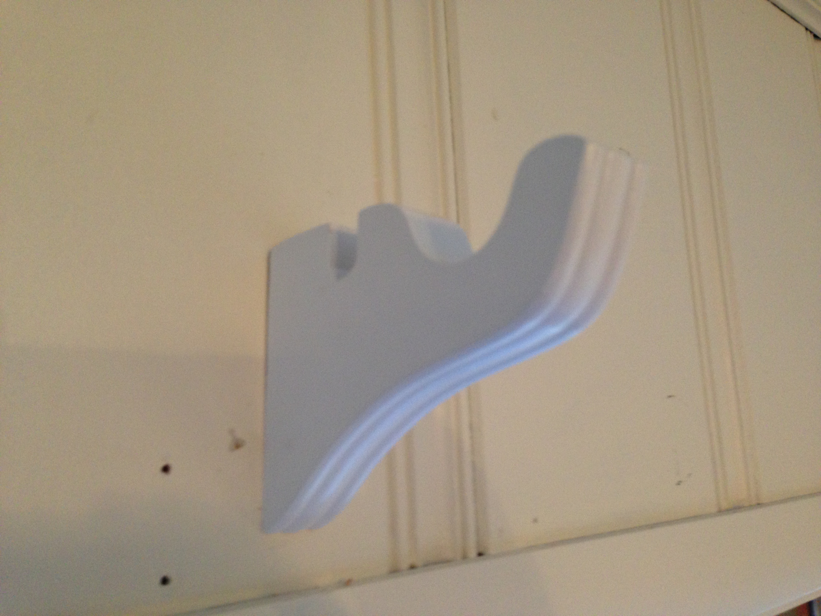 Firstly we used white wooden curtain rod brackets (left over from a failed DIY project). Installing them above each window in the Girl Cave.