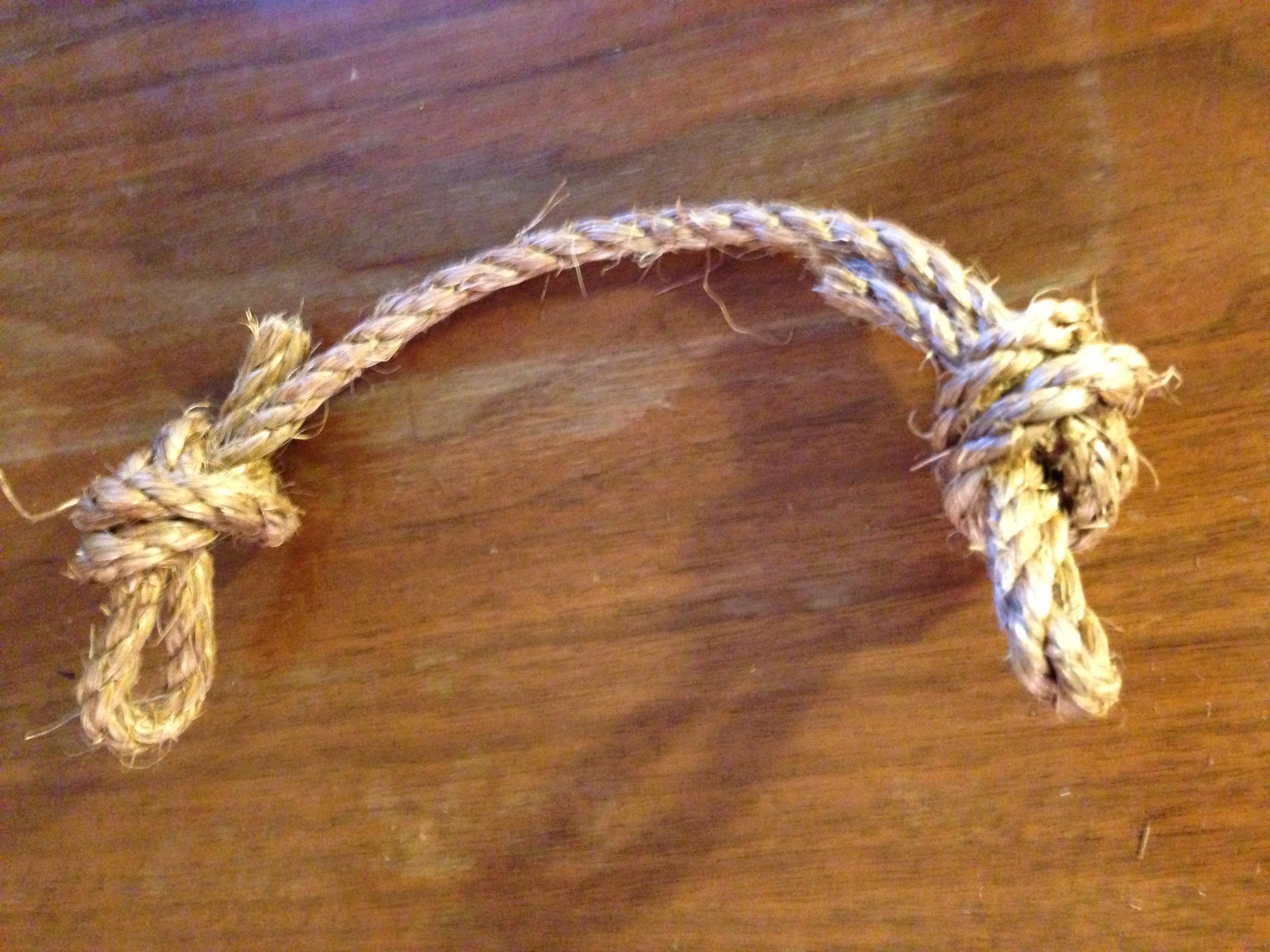 Then tied two knots on each end of a piece of rope, and looped the ends onto the hook.