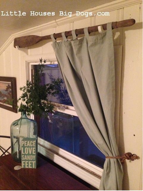 Now what to do with two boat oars?…Don’t want to spend money for curtains and curtain rods…Fab freebie, sea inspired curtains!