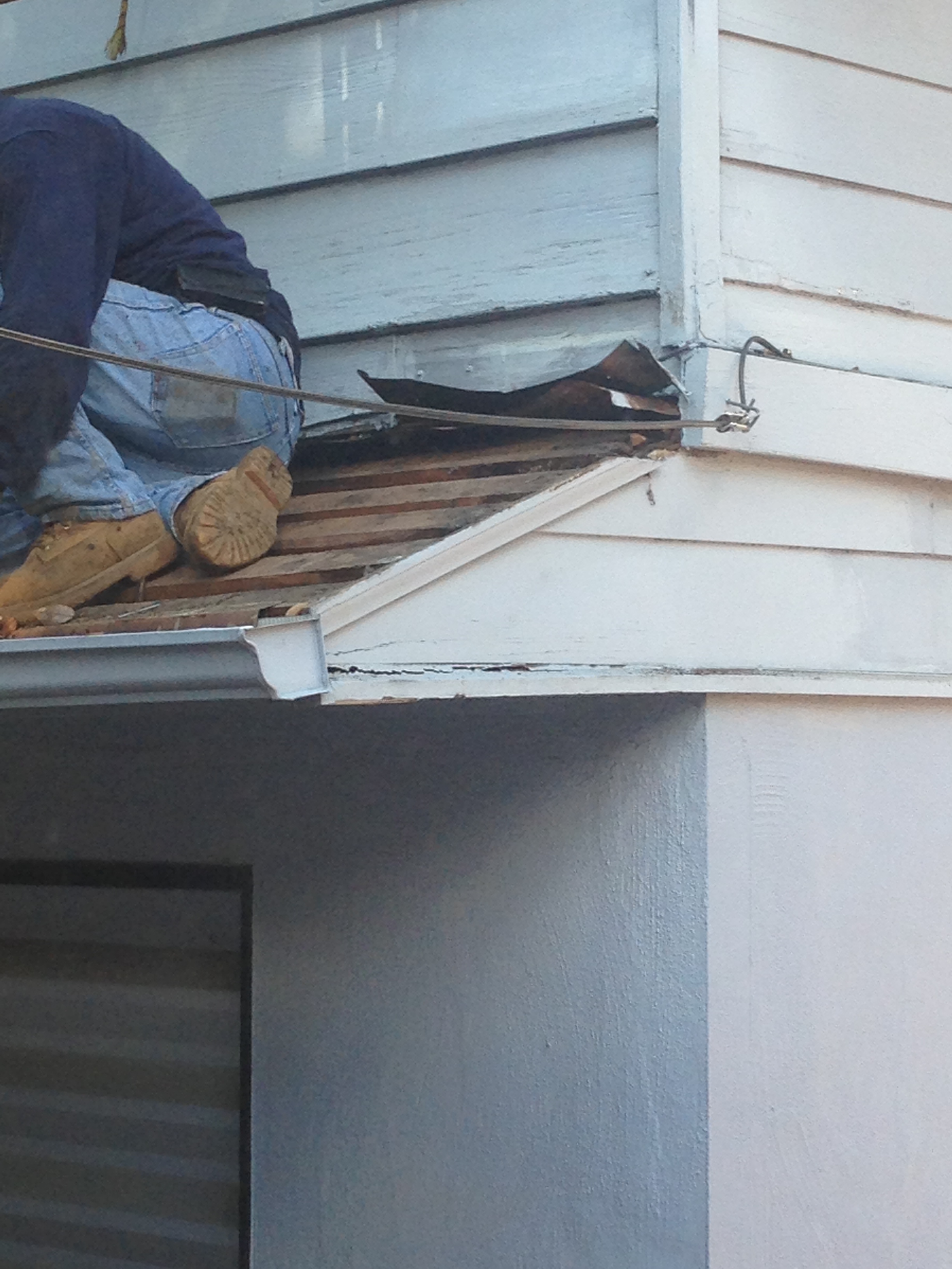 Expect there to be surprises as the roof is coming off…Ours was the second layer of shake, two dump runs and some dry rot. Also do not panic when you see random men sitting on low eaves, with the dry rot.