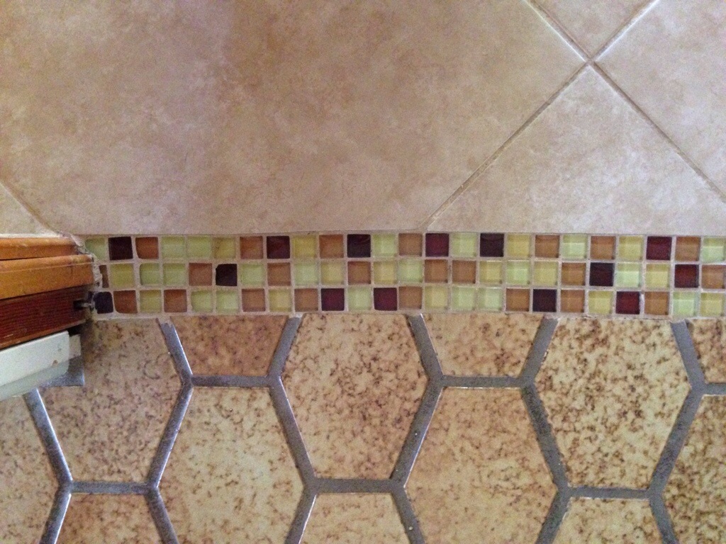 Oh yes we finally got crazy and said goodbye to red, brown, orange, yellow, and lime green glass tile inserts.