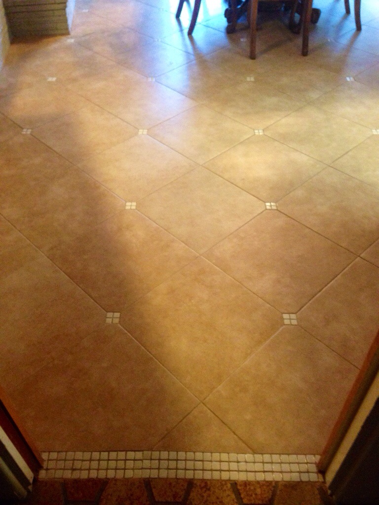 Once home, and still asking ourselves should we really do it, we cleaned and sanded each of the tiles.