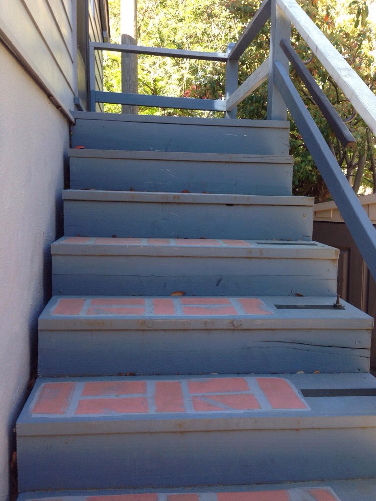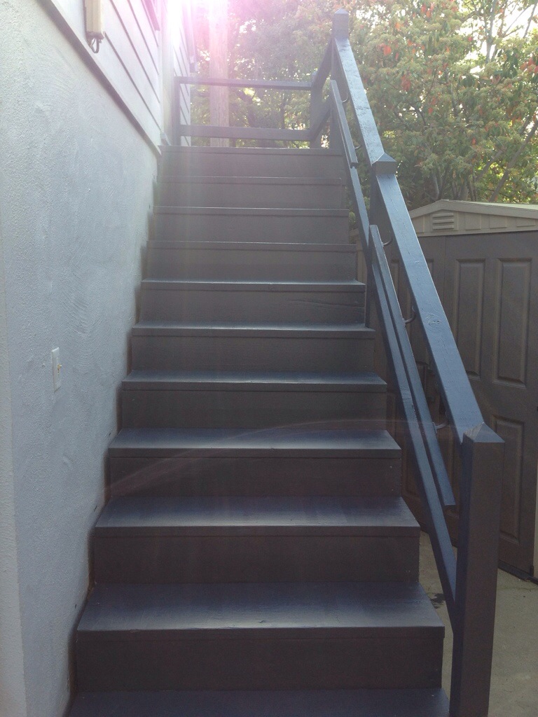 Two coats of custom match Exterior Glidden paint, one afternoon and we have these beautiful new stairs!