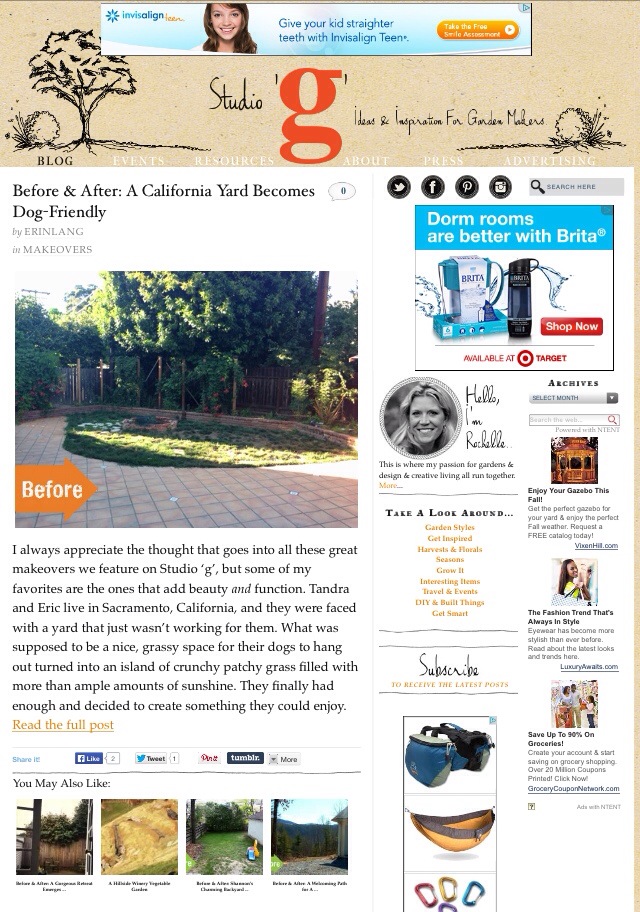 We were thrilled when they asked to feature our (nearly) dog proof backyard makeover! The website is just gorgeous, filled with gardening inspiration, and is an absolutely addicting website. Send LHBD some love, leave a comment or like us on FB, while you’re checking out studiogblog.com In the meantime the pups and us wish you all a safe and wonderful Labor Day weekend! Happy Sunday everyone!