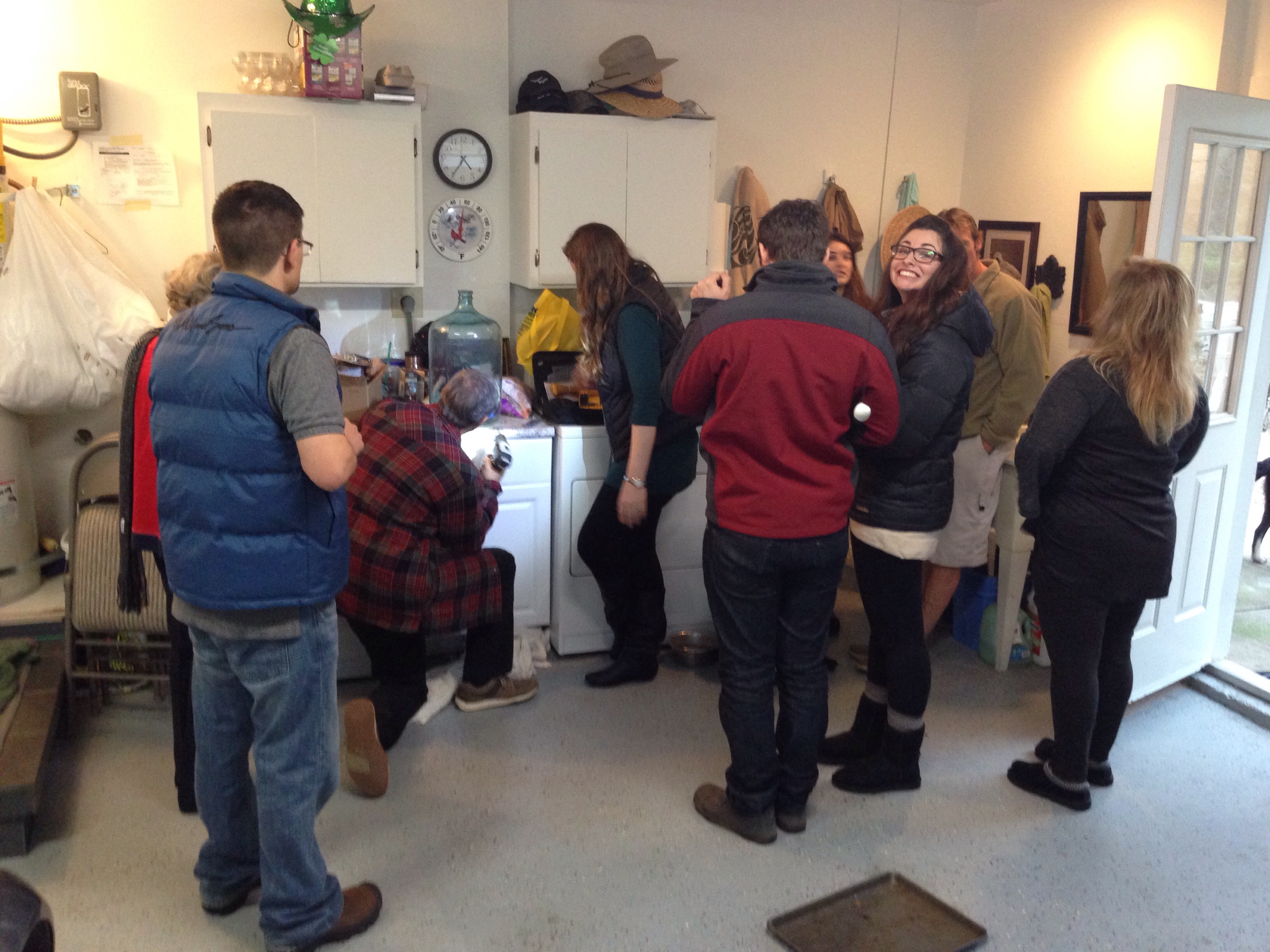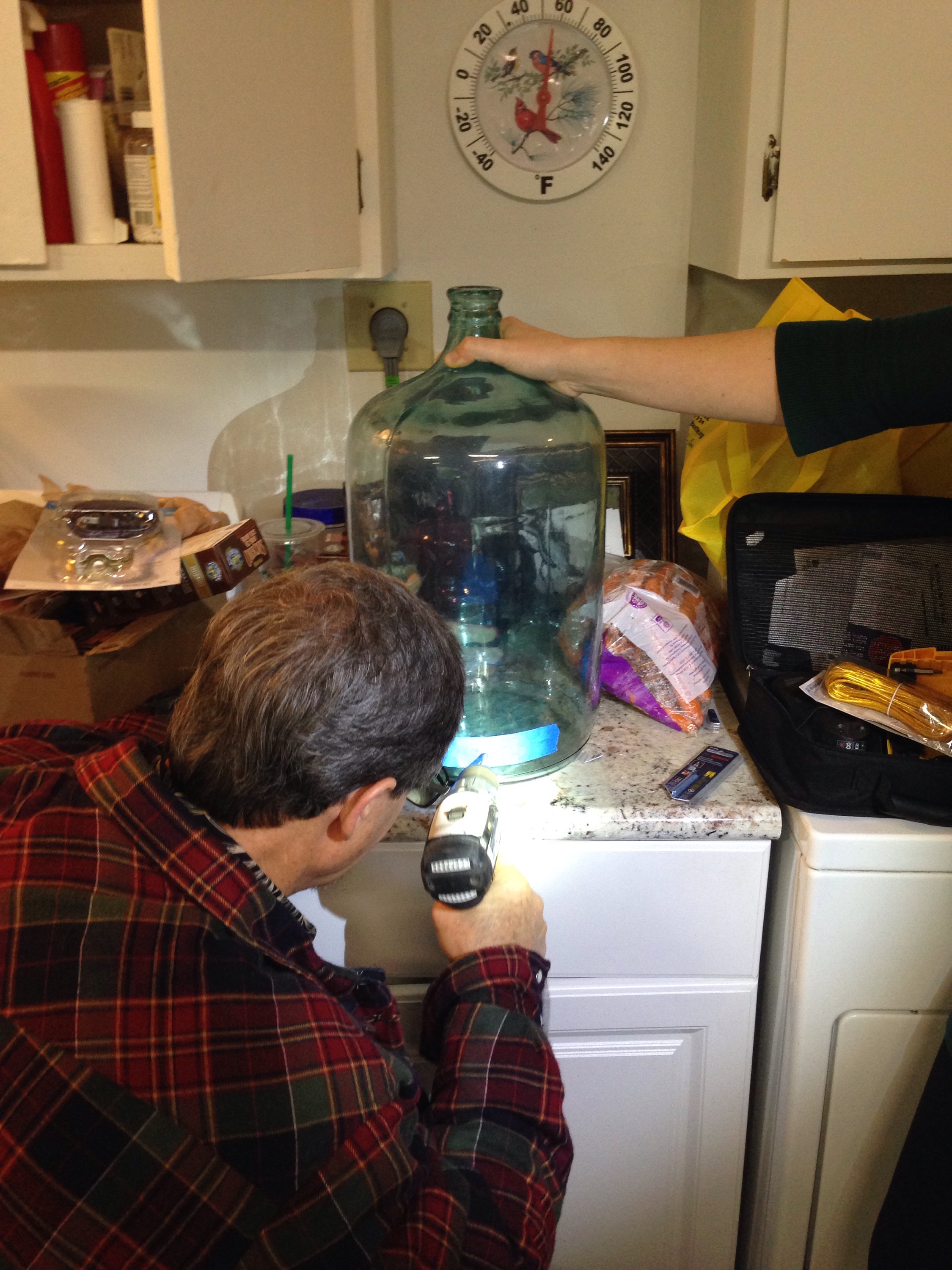 Everyone got into the blogging action. Notice I’m holding the bottle, my fabulous uncle is drilling the hole, my cousin Craig is holding up a work light, and my sweet cousin Danielle is taking all the pictures on my phone.