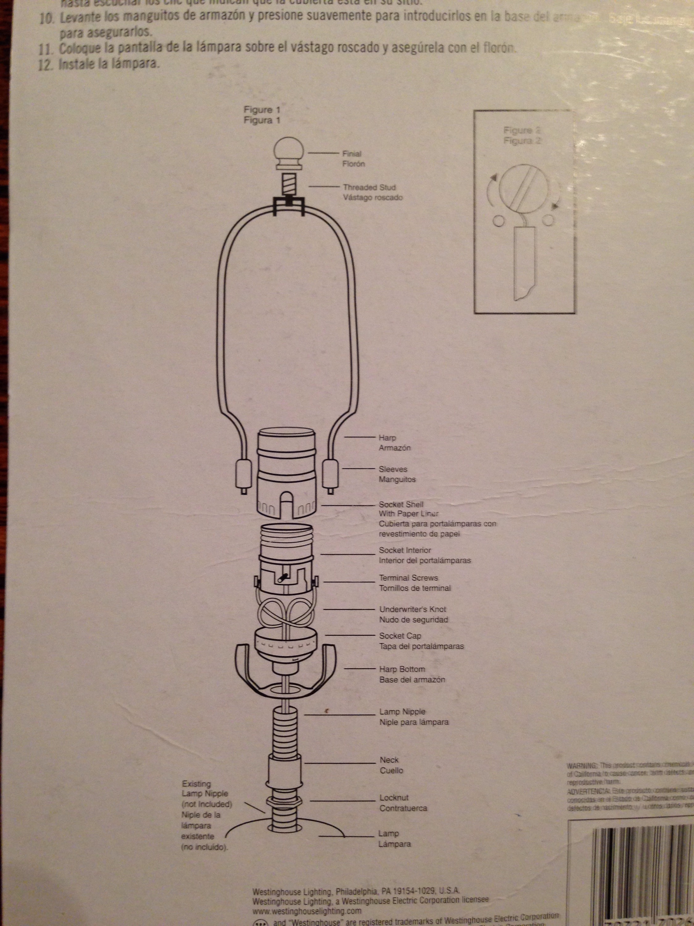 Our electrician was stuck at a job last week and is now coming today. Hopefully we’ll have working speakers by the end of the week. In the meantime I thought I’d fill the blog-post void with a “quick and easy” lamp project. (Notice the quotations…this is to denote heavy sarcasm)