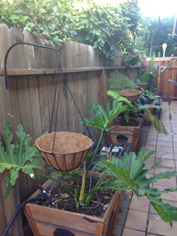 Last year we were so busy landscaping our drought tolerant, “dog proof” backyard, I’d forgotten about the baskets in the sideyard.