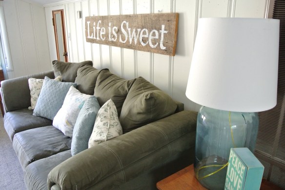 Only in the last month, the need for a guest house (and extra bathroom) has become a necessity. Therefore we put our efforts into overdrive; replacing the water heater, installing light fixtures, adding concrete countertops, deep, deep cleaning, decorating, etc. (even adding those aforementioned accent pillows😉)