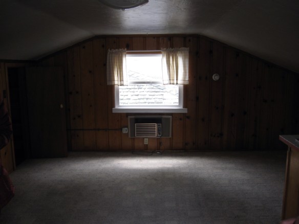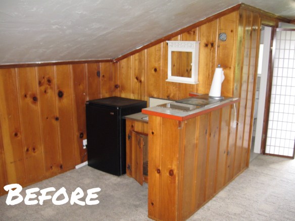 Aptly referred to as “The Cave”, the studio apartment above our garage just creeped me out. Someone even lived and cooked up there at some point during the previous ownership. How do I know this?…Grease, food stains, mold, dirt, etc.