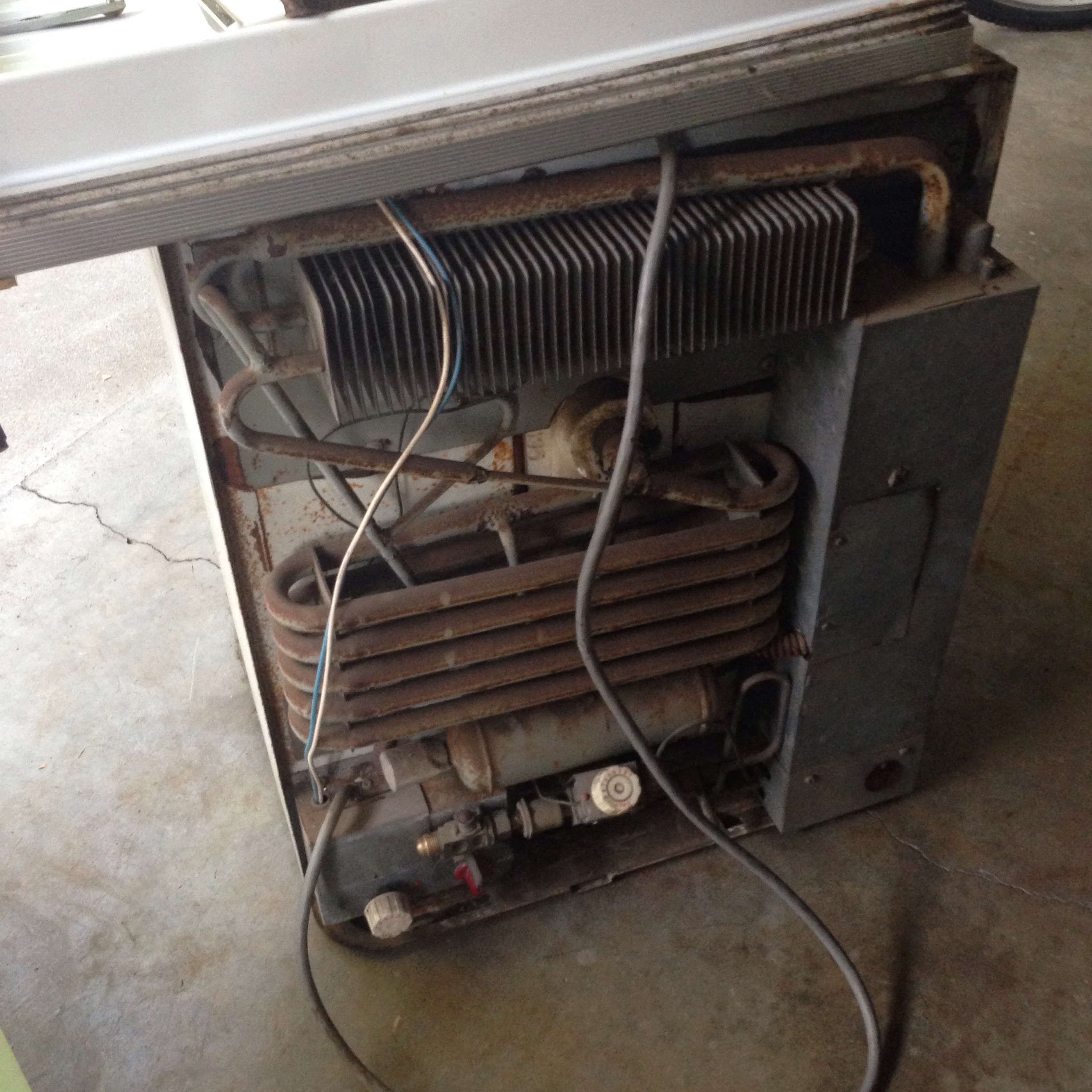 Rusted out 3-way refrigerator