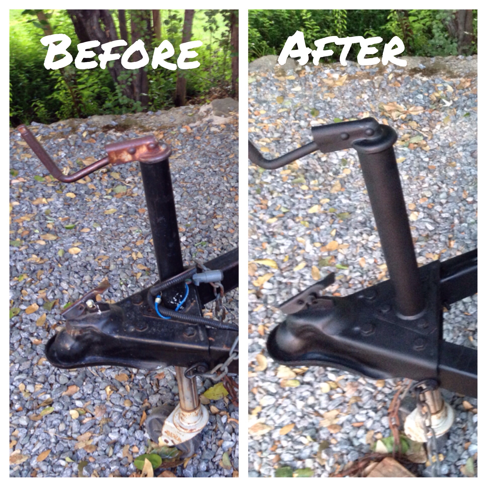 Second project up was grinding and wire brushing away years of rust from the trailer bumper, hitch and step…