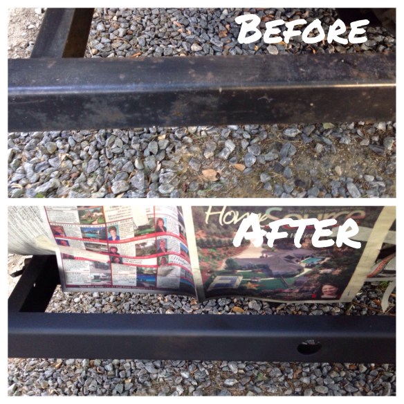 After a few hours, (and a metal shard embedded into my shin- I never complete a project unscathed) I sprayed painted the areas with Rustoleum Rust Reformer in matte black.