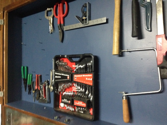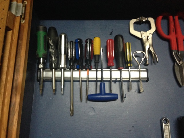 Using the extra slats, we cut two of them to fit the entire length of the metal braces. (with a small hand saw) Use small wood screws (1/2″ phil mod, zinc lath self drills, from Home Depot) and a cordless drill to attach them through the metal brace holes. The reason we did this was to protect our rambunctious dogs from being sliced by the metal braces. The slats are made of soft wood and helped create a rounded edge.