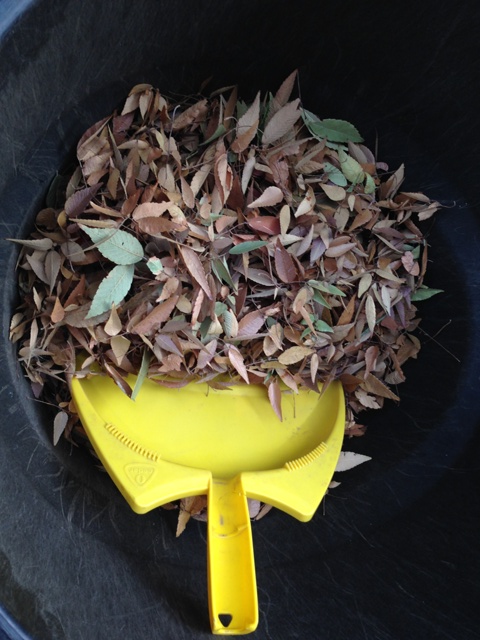 Finally add your leaves, and be sure to cover the root ball or base of your plant, as the experts say, its actually not the outer leaves, branches, etc you’re trying to protect but rather the root system. If you don’t have leaves, they suggested purchasing cedar mulch.